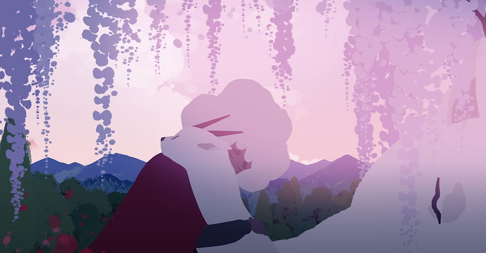 Alba is quickly attacked and thrown into unconsciousness as the larger fox continues to fight. Alone in this fight now, the odds against the large fox becomes insurmountable and is overwhelmed by the volume of the dark long-limbed creatures. Alba eventually wakes up from the attack to see the large fox not moving, eyes closed. In a fit of grief, Alba embraces the large fox, while Neva approaches with hints of fear and sorrow. With their shared grief, Alba and Neva embrace in their sadness, opening the game with a gut-wrenching and powerfully emotional state.