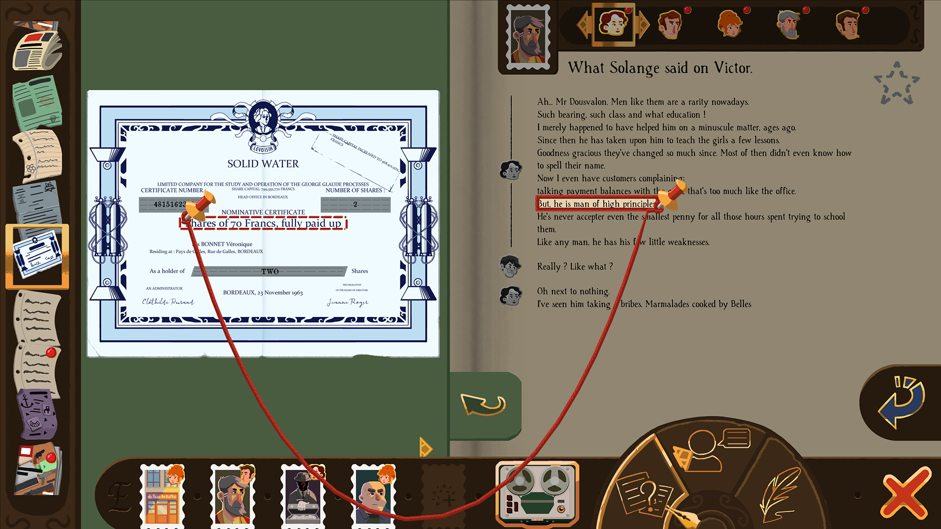 While Chronique des Silencieux has a lovely art style, complete with animated cutscenes and gorgeous French voice acting, the gameplay itself is really difficult. It may not be tough for some, but for your average player, it’s a huge challenge. Players will have to gather testimonials from dozens of characters, collect multiple documents only to make one single connection that will sometimes feel completely out of the blue. After making a proper connection, you’ll have to talk to even more people and find even more evidence. It’s all a who's who of French drama and one that I found was getting tiresome very fast.