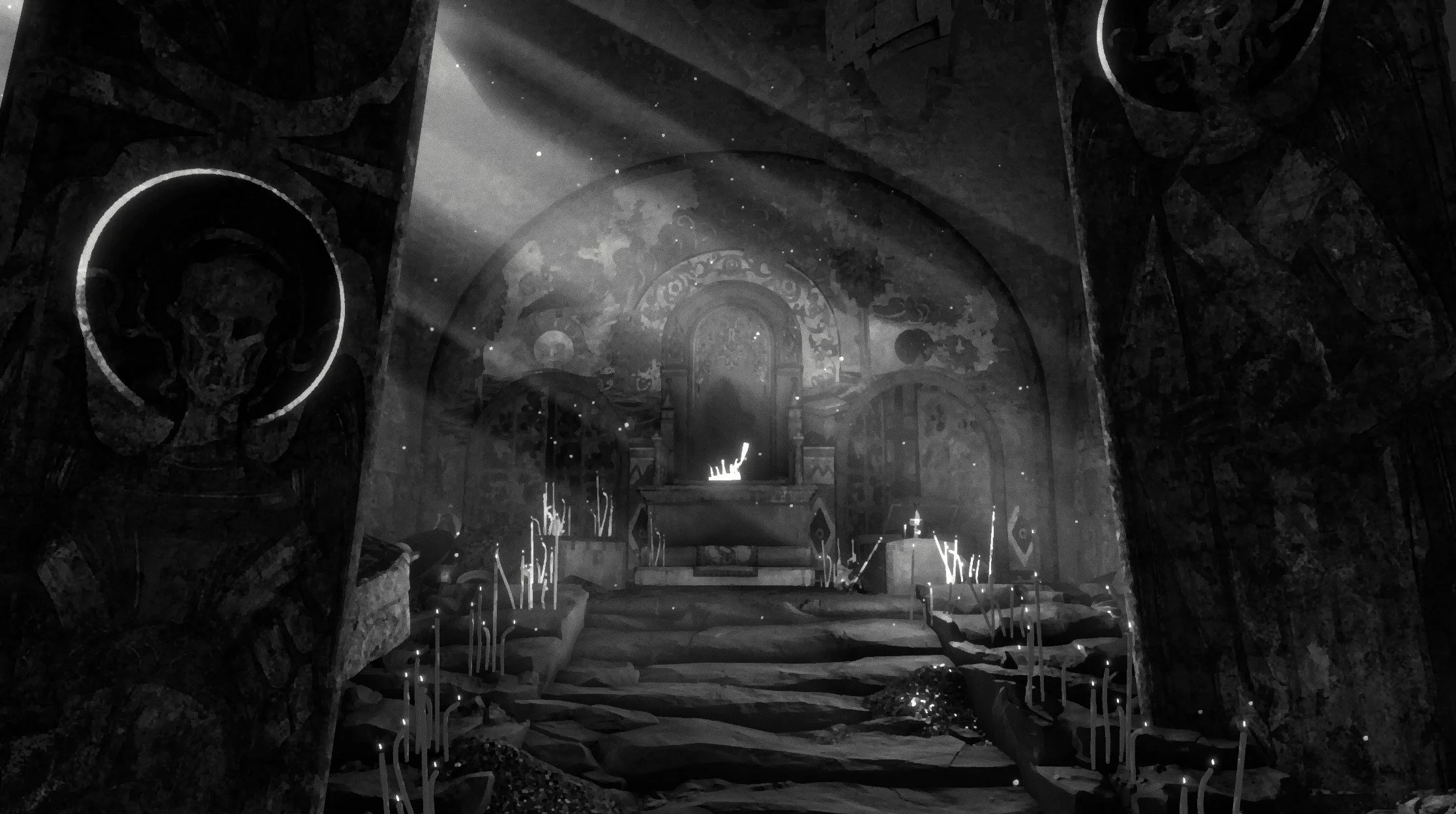 You’ll start off immediately setting out in One-Eyed Likho’s unsettling greyscale world as you attempt to get closer to finding this creature. You’re accompanied by a man referred to only as “Tailor” who seems to have a bit of knowledge himself and is intrigued, at least at first, by your quest to find Likho. He asks to tag along and will follow you around as you explore a darkened forest devoid of anything except for the occasional crow. You’ll also find notes scattered about that hint at what players can expect as they progress. Tailor has his own stories to tell and will speak to Smith regarding the rumors he’s heard about Likho including that it’s very dangerous.